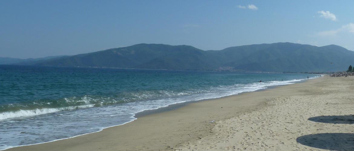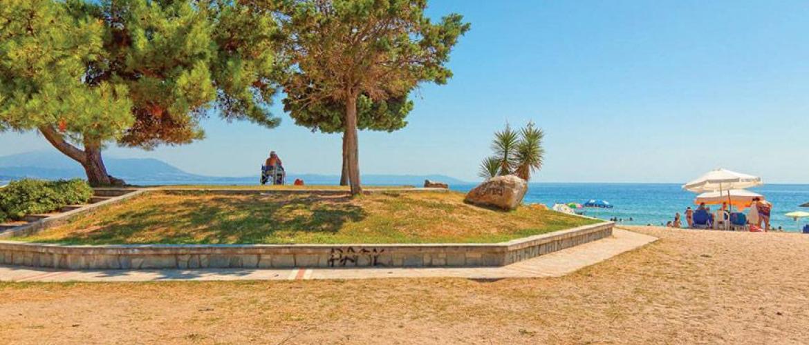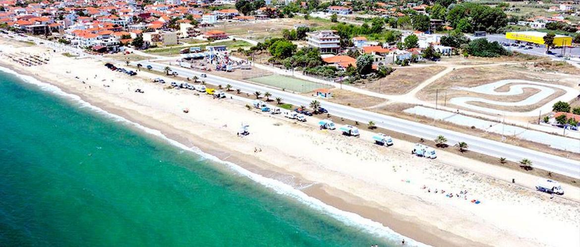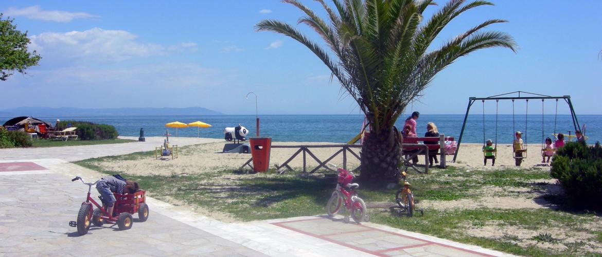 Plaža je uglavnom sredjena i organizovana sa suncobranima, ležaljkama, terenima za odbojku, dečijim igraliština... Postoje i delovi plaže koji nisu ogranizovani, koji su mirni, idealni za one koji žele da se osame i kojima prija tišina. Sama dužina i širina plaže dovode do toga da na plaži nikad nema gužve. U dužini od 4km dužinom plaže se pruža prelepa promenada sa sredjenim travnjacima, drvećem, cvećem, fontanama, parkovima, restoranima sa baštom, kafićima i tavernama.