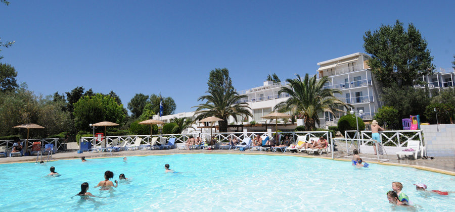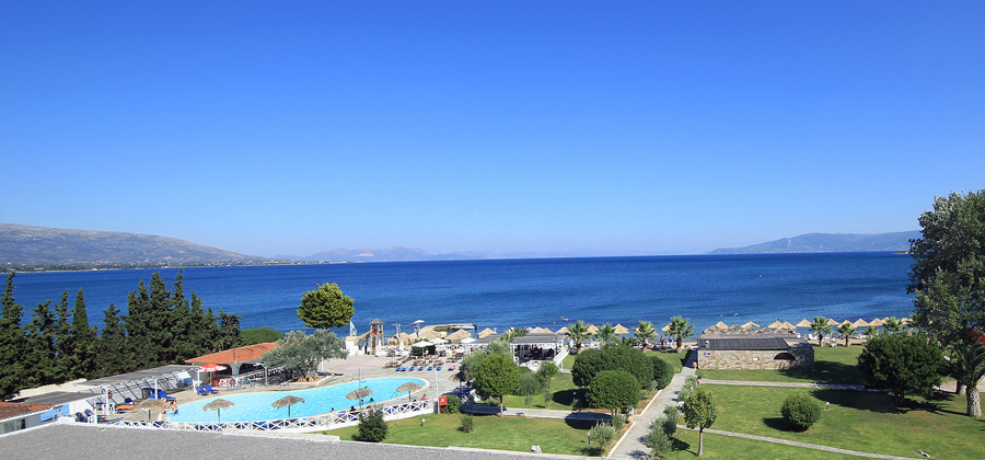 Grand Blue 3* - Nalazi se na samoj plaži i sastoji se od glavne zgrade sa 96 soba i 3 apartmana i više od 75 bungalova smeštenih u dvospratnim zgradama. Hotel sadrži: recepciju (24h), glavni restoran, “a la carte” restoran, grčku tevernu pored plaže, bazen, bar na plaži, glavni bar, bar na bazenu, wi fi, video igre, bilijar, mini market, prodavnicu nakita, diskoteku, sportove na vodi, vrtić, mini klub za decu od 4 do 12 godina, pranje veša, parking, menjačnicu, bankomat, lift. Sve sobe imaju A/C, SAT TV, TV flat screen, frižider, kupatilo, telefon, balkon ili tersu.