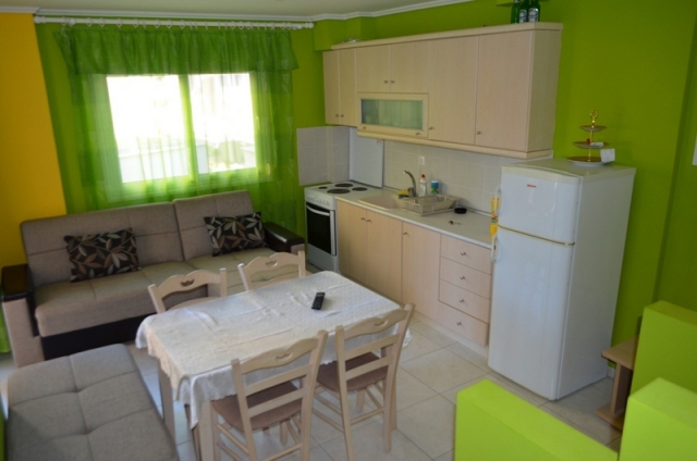 Vila Hellen se nalazi u Haniotiju, na 150m od plaže i 250m od centra Haniotija, preko puta ApartHotela Dionisos. Vila je novoizgrađena i luksuzno opremljena. Vila poseduje petokrevetne mezonete, koji se nalaze na drugom spratu vile. Mezonet se sastoji od dva nivoa koji su povezani spiralnim stepeništem, gde se na prvom nivou nalazi dnevna soba sa kompletno opremljenom kuhinjom (veliki frižider sa komorom za zamrzavanje, šporet sa rernom, posuđe, aspirator…), WC-om i jednom spavaćom sobom u kojoj je francuski ležaj standardnih dimenzija i iz koje se izlazi na veliku terasu. Na drugom nivou se nalazi druga spavaća soba u kojoj je francuski ležaj i singl krevet. Takođe se na drugom nivou nalazi i kompletno opremljeno kupatilo sa kadom i veš mašinom. Klima uređaj se nalazi između dva nivoa i korišćenje je uključeno u cenu najma. Vila ima LCD TV. Promena peškira i posteljine vrši se svakog petog dana dok se čišćenje apartmana vrši na dan smene.