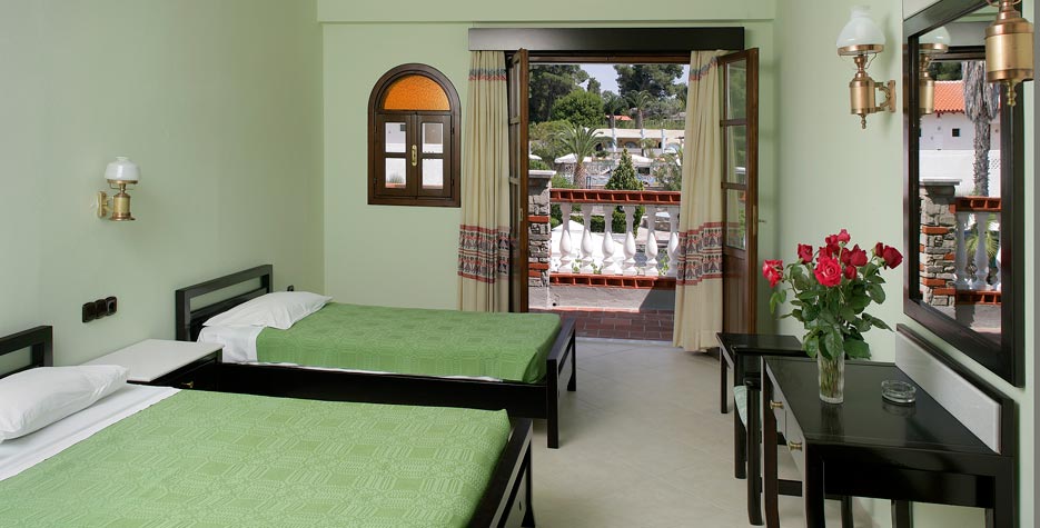 Struktura soba: Jednokrevetna soba – oko 22m2. Sa pogledom na bazen ili na baštu. Namenjena za jednu osobu. Standardna soba – oko 22m2. Sa pogledom na bazen ili na baštu. Francuski krevet ili dva odvojena kreveta i pomoćni krevet. Namenjene za 2-3 osobe. Suite – oko 40m2. Sa odvojenom spavaćom i dnevnom sobom. Namenjene za 2-4 osobe.