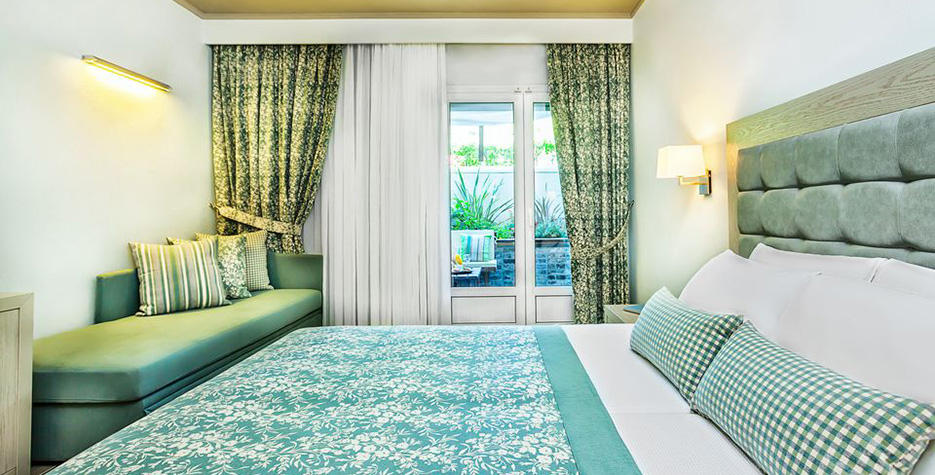Struktura soba: Eco room - 26m2, predviđene za 2 odraste osobe i 1 dete (francuski ili dva odvojena kreveta i sofa), na najnižoj spratnosti (u prizemlju). Standard soba pogled planina/more - oko 29m2, predviđene za 2 odrastle osobe i 1 dete (francuski ili 2 odvojena ležaja sa pomoćnim ležajem). Superior soba pogled planina/more - oko 26m2, namenjene za 2-4 osobe (francuski krevet ili 2 odvojena kreveta i sofa). Junior suite – oko 35m2, nalazi se u prizemlju sa odvojenom spavaćom sobom od dnevnog boravka, predviđeno za 2-4 osobe (francuski ili 2 odvojena kreveta i sofa). Deluxe suite pogled more – oko 48m2, sastoji se od spavaće i dnevne sobe, predviđeno za 2-4 osobe (francuski krevet i sofe za sedenje), velika terasa sa ležaljkama (baštenski sto i stolice).