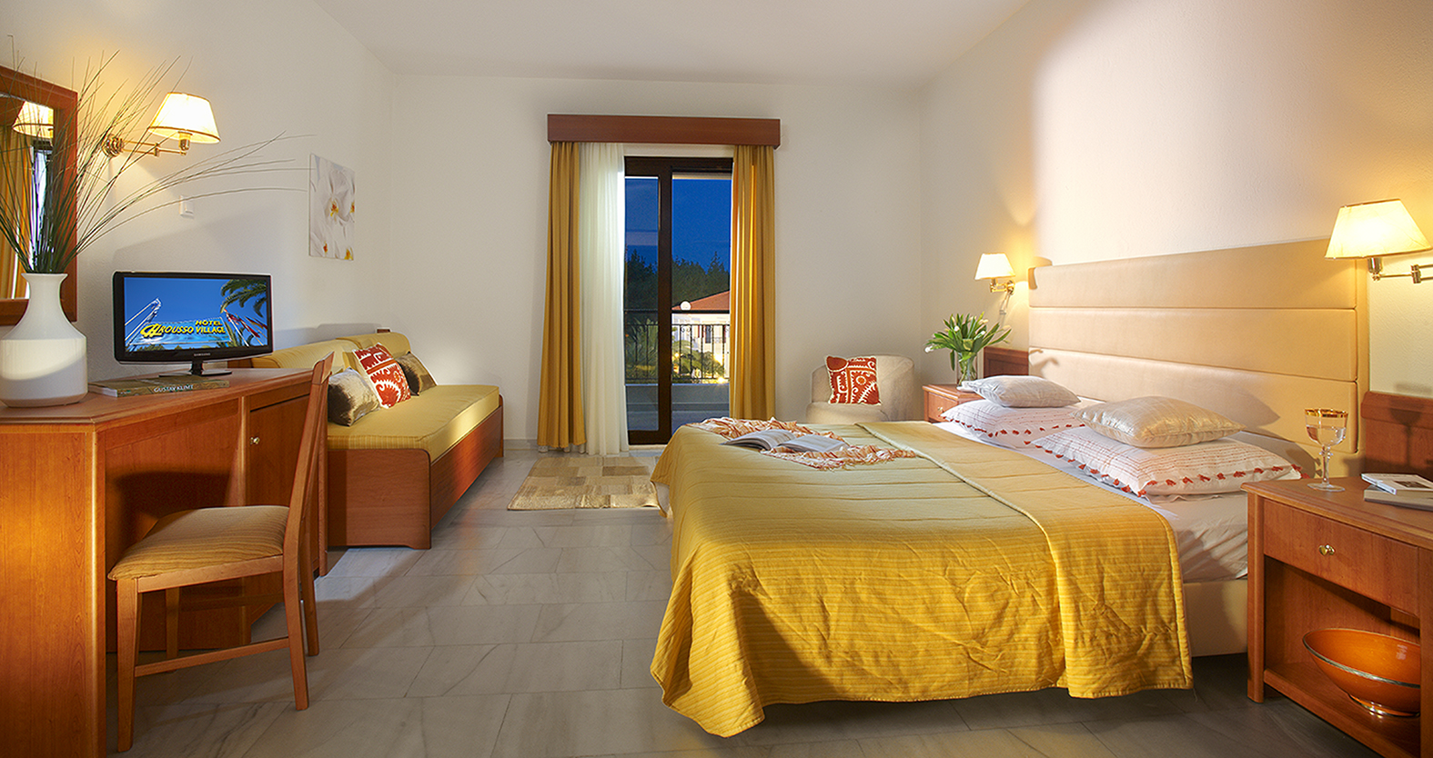 Nalazi se na oko sedam kilometara od Pefkohorija i oko dva kilometra pre Paliouri-ja, okružen borovom šumom i maslinjacima, na oko četristo metara od najlepše plaže poluostrava, plaže Xenia ili Paliouri beach. Klub hotel Chrousso Village, tradicionalne grčke arhitekture, smešten na četrdeset hektara u prelepom mediteranskom vrtu, predstavlja idealan izbor za porodice sa malom decom. Hotel se sastoji od 19 manjih zgrada, ima recepciju sa lobijem, Internet "corner" (uz doplatu na licu mesta), wi-fi Internet u javnim delovima hotela (uz doplatu na licu mesta), dva bazena sa ležaljkama i suncobranima (uključenim u cenu), parking, prodavnicu, 2 dečja bazena, mini klub i igralište, terene za tenis (uz doplatu na licu mesta), košarku i odbojku, više restorana i barova, organizovanu animaciju... Suncobrani i ležaljke na plaži se doplaćuju oko 7 eur (set: 2 ležaljke i suncobran). Peškiri za bazen i plažu se iznajmljuju uz depozit. Svi studiji i apartmani su lepo dizajnirani, sa terasom i svi su sa A/C, SAT TV, TWC sa fenom, krevecom (na upit, bez doplate), sefom (uz doplatu na licu mesta) i telefonom. Studiji su namenjeni za 2-4 osobe (2 standardna ili "francuski" ležaj i sofa). Apartmani su namenjeni za 2-5 osoba i sastoje se iz spavaće sobe (2 standardna ili "francuski" ležaj) i dnevnog boravka (sofa na rasklapanje). Usluga u hotelu je polupansion ili sve uključeno – “švedski sto” (samoposluživanje).