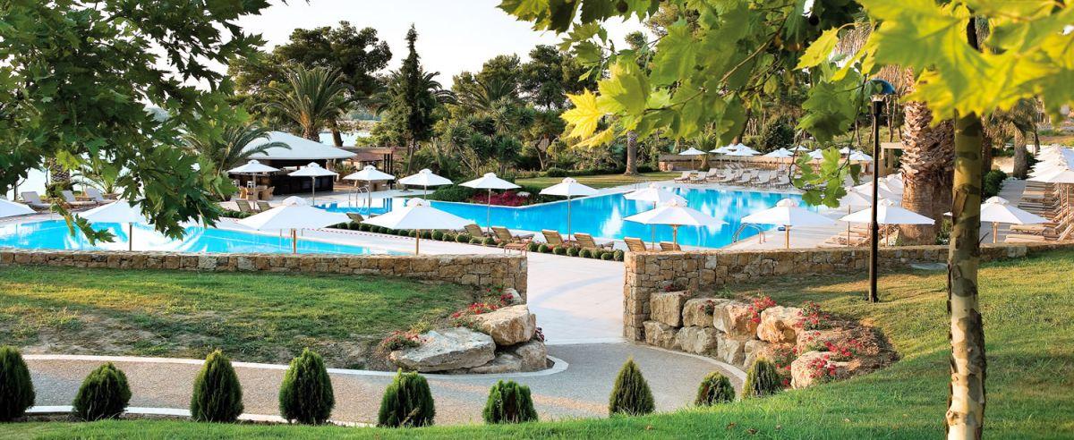 Svetlucanje azurno plavog mora, beli pesak i stari maslinjaci, ukrasi su idiličnih predela Sani Beach Club hotela koje je teško zamisliti ako ih ne