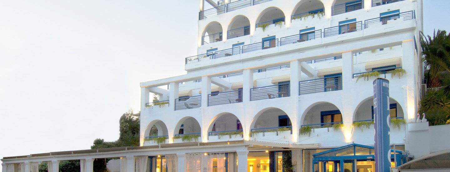 Hotel (ex Mykonos Paradise) se nalazi se na 40 kilometara od Soluna, prema poluostrvu Kasandra, u centru velikog letovališta, a od prelepe peščane