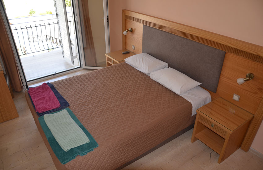Izuzetno prostrani četvorokrevetni apartmani se sastoje od dve odvojene prostorije od koje svaka ima svoj izlaz na terasu. Spavaća soba se sastoji od francuskog kreveta veličine 160X190cm, TV-a, ormana, dva noćna stočića i klima uređaj, dok se druga prostorija sastoji od dva singl ležaja standardnih dimenzija, noćnog stočića, ormana, još jednog klima uređaja, a u svom sastavu poseduje i kompletno opremljenu kuhinju i sto za ručavanje. U sastavu kuhinje je frižider, mikrotalasna peć, rešo sa dve ringle, kao i ketler za zagrevanje vode. Kupatilo je opremljeno sa wc-tušom i fenom za kosu. Velike i prostrane terase su sastavni deo svakog apartmana i poseduju set od stola sa četiri stolice.