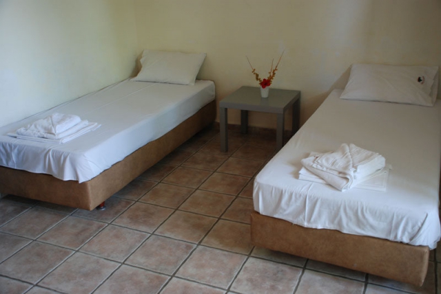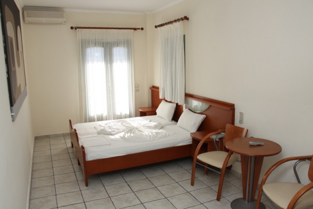 Vila Aristidis se nalazi 80 metara od plaže u glavnoj šetačkoj ulici koja vodi ka moru. U sklopu vile nalazi se bazen sa ležaljkama, recepcija, lobi, caffe bar sa wireless internetom koji stoje na raspolaganju gostima i igraonica za decu. Vila poseduje dvadeset dvokrevetnih i trokrevetnih studija i četvorokrevetne i šestokrevetne apartmane. Svi studiji i apartmani su opremljeni televizorom, fenom za kosu u kupatilu, terasom, kuhinjom (frižider, mini električni šporet, posuđe) i klima uređajem. Korišćenje klima uređaja je uključeno u cenu najma u julu i avgustu dok se u ostalim terminima doplaćuje 5 eura dnevno. U dvorištu vile nalaze se i tuševi, wc, kao i prostorija za poslednji dan boravka. Posteljina i peškiri menjaju se na 5 dana, dok je čišćenje svakog dana. Iza objekta se nalazi parking.