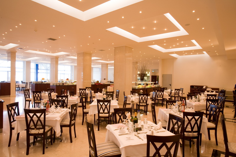 Hotelski sadržaj: restoran, taverna, a la carte restoran, bar, bazen sa ležaljkama i suncobranima, dečji bazen, bar pored bazena, koktel bar, sef, sauna, masaže, fitnes, igralište za decu, tenis, stoni tenis, animacija, odbojka na plaži, internet.