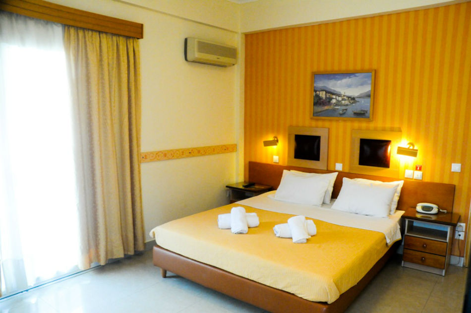 Položaj hotela: hotel se nalazi u centru Lutrakija, udaljen samo 80m od plaže, na kojoj se nalazi zakupljeni hotelski deo plaže sa ležaljkama i suncobranima – besplatnim za hotelske goste (uz najmanju konzumaciju od 2 eur)
