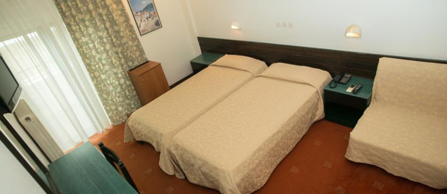 Struktura soba: Standardna soba – oko 14-17m2. Namenjene za 2-4 osobe (dva odvojena kreveta i pomoćni krevet). Jedno dete od 0-8 godina deli krevet sa roditeljima.