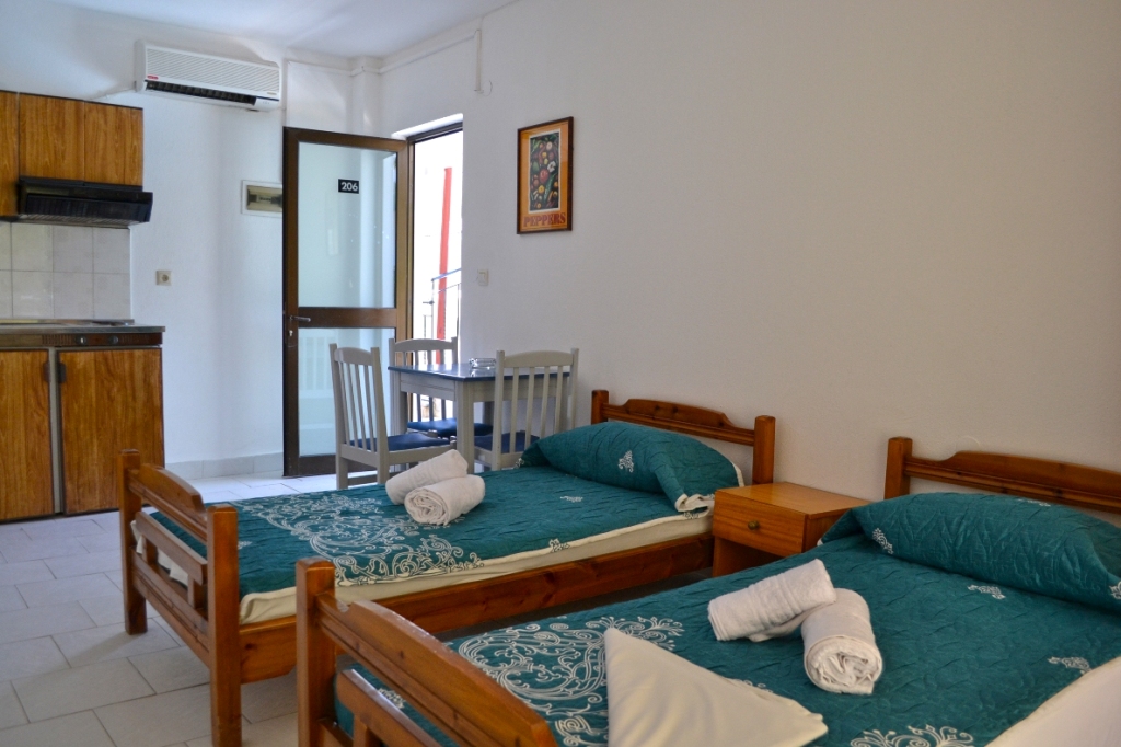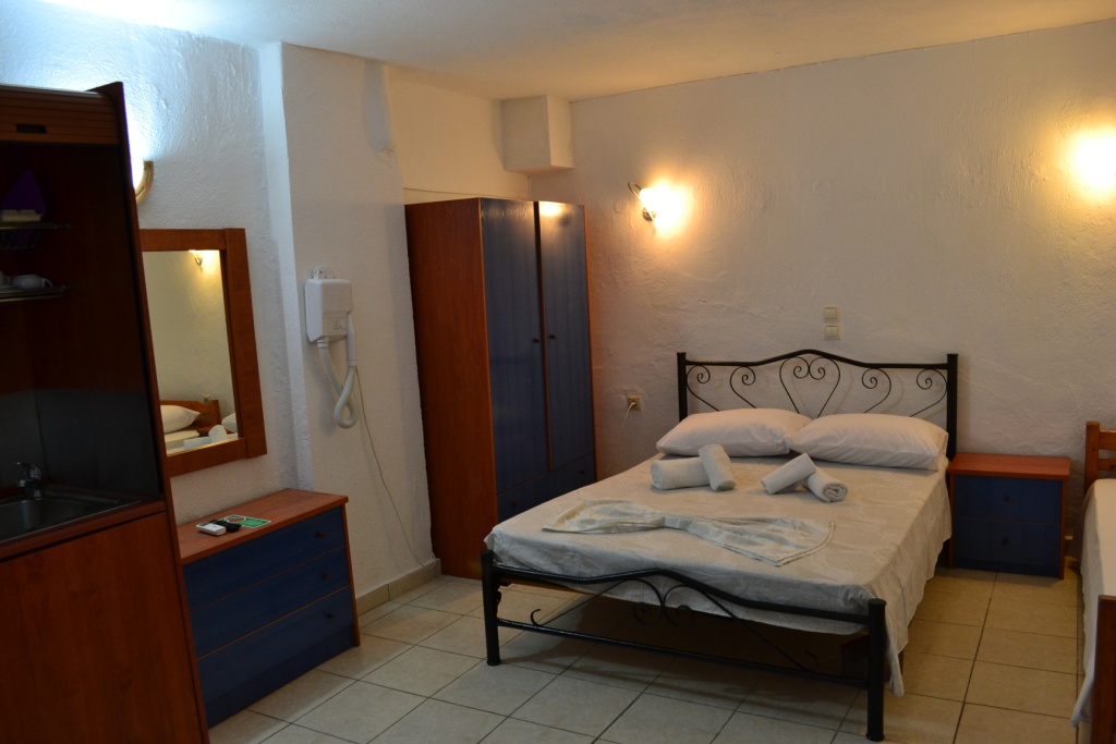 Hotel se nalazi oko 500 metara od centra Haniotija (u maloj ulici pored hotela Grand Victoria) i oko 400 metara od peščano-šljunkovite plaže. Sadržaj hotela: recepcija, lobi, wifi internet u javnim delovima hotela (besplatno), restoran, bar, TV sala. Sobe se nalaze u prizemlju, na prvom ili drugom spratu i imaju TWC sa fenom, malu kuhinju (opremljenu), SAT TV, wifi internet (besplatno), A/C, krevetac (na upit bez doplate) i terasu. Standardne sobe su veličine cca 18 kvm, namenjene su za 2-3 osobe (2 standardna ležaja ili "francuski ležaj" i pomoćni ležaj). Trokrevetne sobe su veličine cca 22 kvm, namenjene su za 2-4 osobe (2 standardna ležaja ili "francuski ležaj" i sofa i/ili pomoćni ležaj - u zavisnosti od broja osoba koje u njoj borave). Usluga u hotelu je noćenje sa doručkom - kontinentalni doručak.