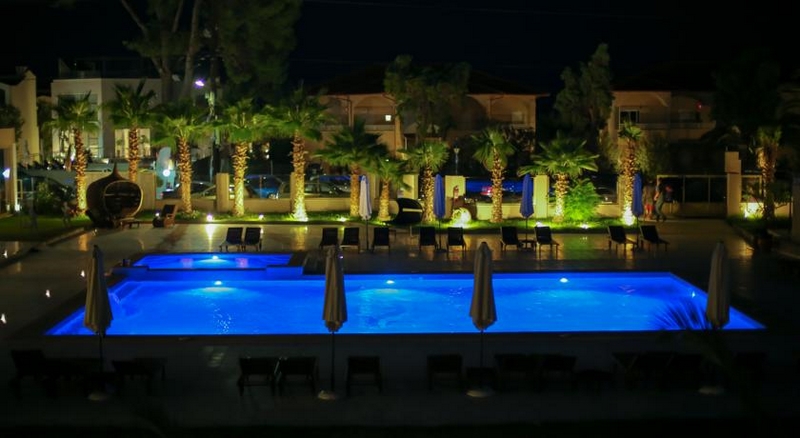 Objekat Hanioti Melathron smešten je nedaleko od centra dinamičnog Haniotija, na oko 80 metara od plaže. U ponudi ima otvoreni bazen, restoran i klimatizovane sobe sa balkonima koji gledaju na bazen. Sve sobe u objektu Hanioti Melathron sadrže TV i frižider. Kupatila u sobama nude kadu, fen za kosu i besplatan toaletni pribor. Besplatan bežični internet dostupan je u zajedničkim prostorijama. Restorani i prodavnice nalaze se na manje od 5 minuta hoda. Objekat Hanioti Melathron udaljen je 90 km od Aerodroma Solun i 20 km od Kasandrije.