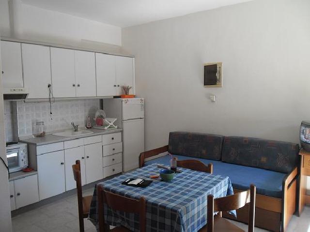 Apartmani se sastoje od odvojene spavaće sobe u kojoj se nalaze dva singl ili 1 francuski ležaj, i druge sobe u čijem se sastavu nalazi kuhinja sa stolom za ručavanje, (mini elek.šporet sa rernom,veliki frižider sa odvojenom komorom za zamrzavanje, posudje.) sa jednim singl ležajem i jednim komfornim pomoćnim ležajem, tv, klima (bez doplate), wi-fi internet,kupatilo (tuš kada, ručni peškiri). Svaka soba u apartmanima ima izlazak na terasu sa garniturom za sedenje. Promena posteljine na pola smene. Parking se nalazi ispred vile. Vila kategorisana sa 3 ključa po lokalnoj grčkoj kategorizaciji.