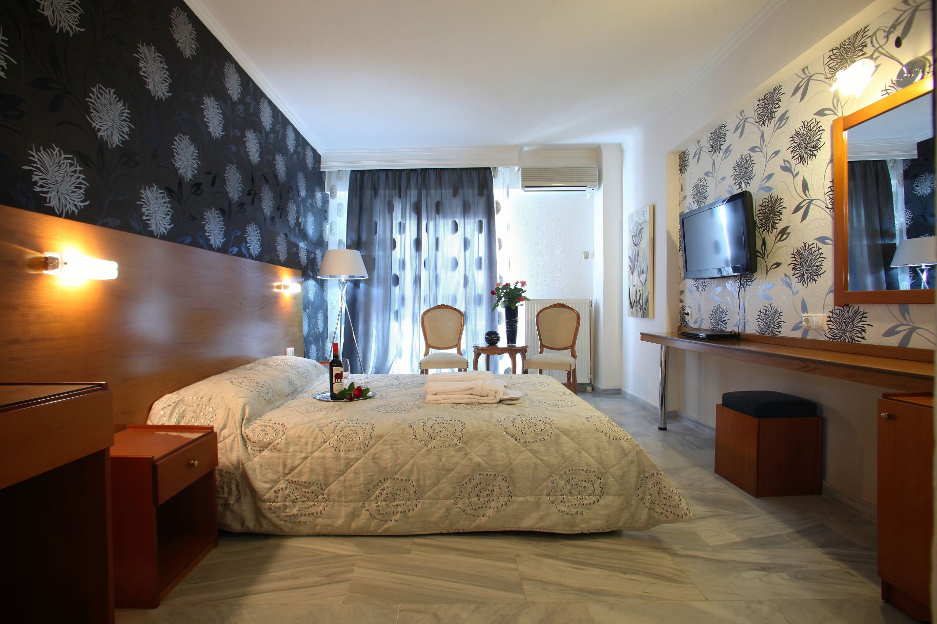 Hotel se nalazi na odličnoj lokaciji, u centru Nea Kalikratije, oko 70 metara od mora i 35 kilometara od Soluna. Omogućava opušten i miran odmor uz ljubaznost i grčku gostoprimljivost. Hotel ima recepciju, wifi internet u javnim delovima hotela (besplatno), restoran, bar, bazen. Suncobrani i ležaljke oko bazena su uključeni u cenu. Sve sobe sadrže klima uredjaj, fen za kosu, telefon, frizider, SAT TV, kupatilo i terasu. Standardne sobe su veličine cca 17-20 kvm i namenjene su za 2-3 osobe (2 standardna ili "francuski" ležaj i pomoćni ležaj). Superior sobe su veličine cca 20-25 kvm i namenjene su za 2-4 osobe (2 standardna ili "francuski" ležaj i sofa). Usluga u hotelu Mallas je noćenje sa doručkom ili polupansion: doručak i večera - “švedski sto“ (samoposluživanje).