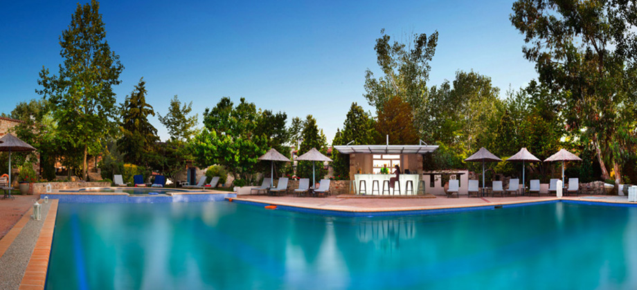 Sadržaj – Sala za doručak, room servis, bazen, bazen za decu, 7 igrališta, restoran, recepcija, bar, bar na bazenu.