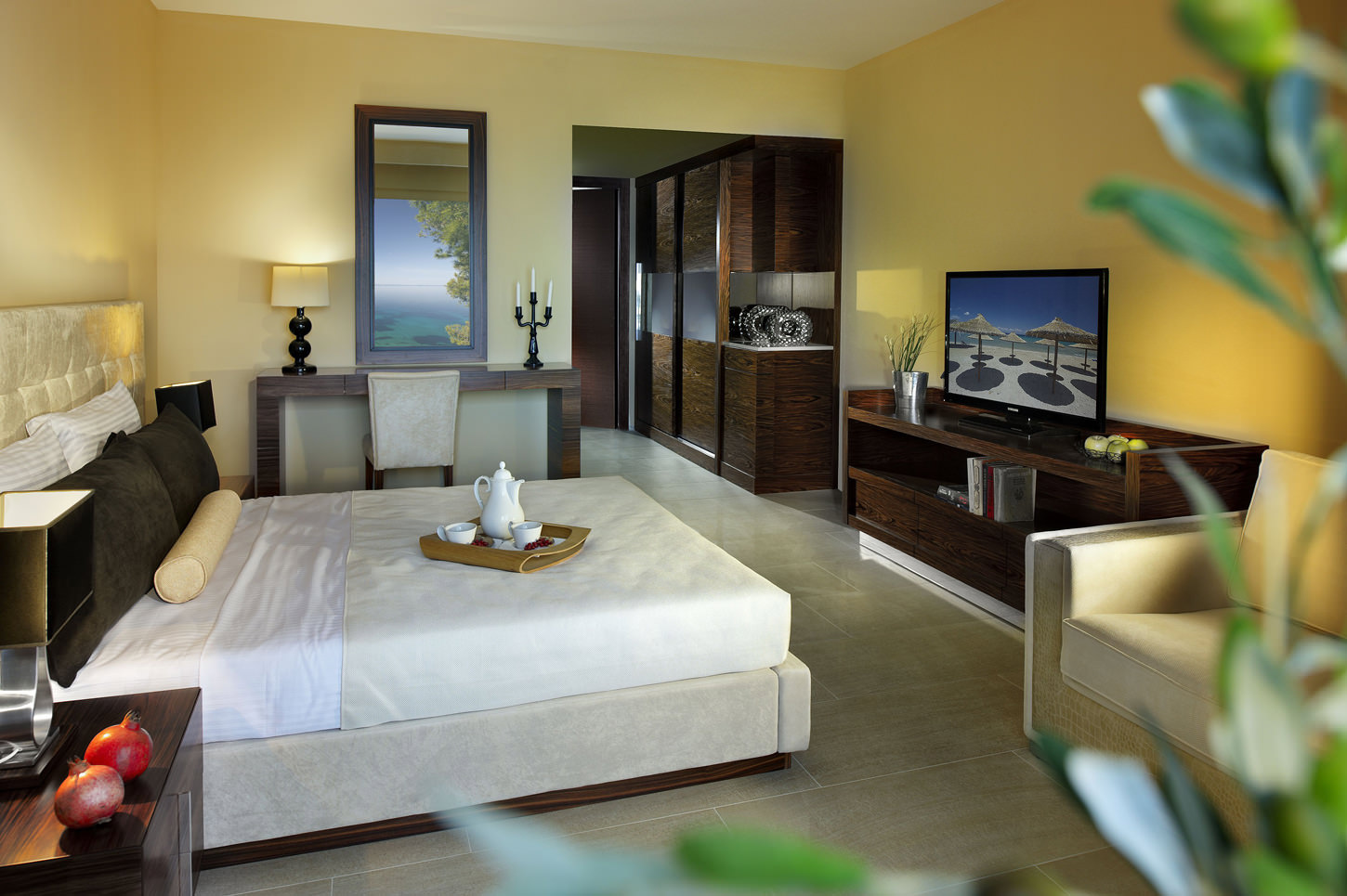 Elegant sobe su veličine cca 25 kvm, imaju pogled na baštu ili bočni pogled na more i namenjene su za 2-3 osobe (2 standardna ležaja ili "francuski ležaj" i sofa). Sobe sa pogledom na baštu se nalaze u prizemlju ili na nižim spratovima, a sobe sa (bočnim) pogledom na more se nalaze na višim spratovima hotela. Junior suite su veličine cca 45 kvm i namenjene su za 2-4 osobe, kombinovana dnevno spavaća soba (2 standardna ležaja ili "francuski ležaj" i 2 fotelje na rasklapanje). Suite su veličine cca 50 kvm i namenjene su za 2-4 osobe, sastoje se iz spavaće sobe (2 standardna ležaja ili "francuski ležaj") i dnevne sobe (2 fotelje na rasklapanje). Usluga u hotelu je polupansion – “švedski sto” (samoposluživanje). Prilikom prijave u hotel, potrebno je kreditnom karticom ili gotovinom uplatiti tzv. sigurnosti depozit u iznosu od 300 eura.