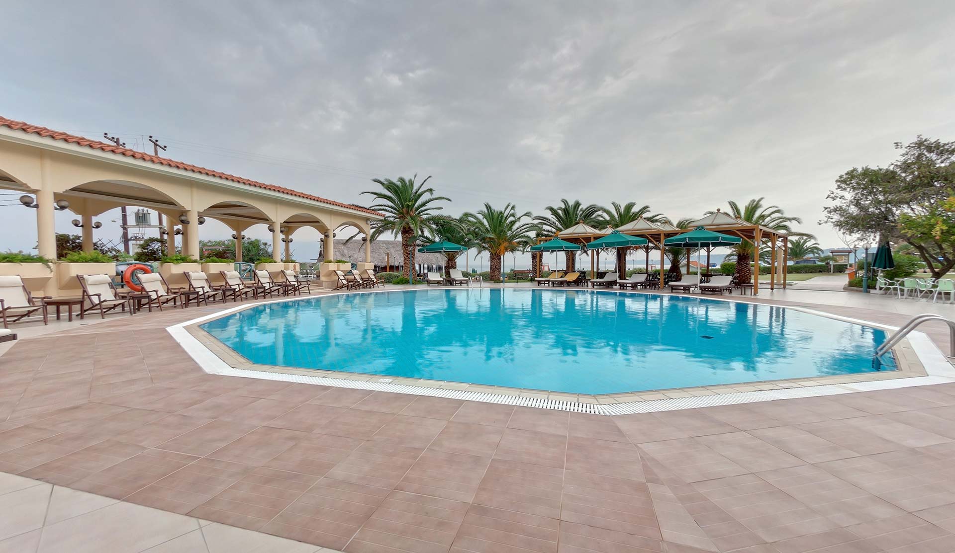 Hotelski kompleks Possidi Holidays nalazi se u prelepom mediteranskom vrtu i okruženju, na tri i po kilometra dugoj plaži, okružen borovom šumom i maslinama, nedaleko od centra malog Posidija. Idealan je za one koji traže odmor u lepoj prirodi, mirnu atmosferu, uz visok kvalitet usluge. Hotel se sastoji od glavne zgrade i 8 manjih „bungalova“ sa 8-12 soba različite vrste i struktura. Sadržaj hotela: restoran, grčka taverna, piano bar sa kaminom, snek bar na plaži, bazen, dečji bazen, wi-fi Internet u javnim delovima hotela (besplatno), SPA centar (u okviru kojeg su jacuzzi i teretana besplatni, a sauna, masaže i tretmani se doplaćuju), dečje igralište, rent -a- car, teniski tereni (uz doplatu na licu mesta), parking... Suncobrani i ležaljke oko bazena su uključeni u cenu, a na plaži se doplaćuju oko 6 eur (set: 2 ležaljke i suncobran). Peškiri za bazen i plažu se iznajmljuju uz depozit. Sve sobe u hotelu imaju TWC sa fenom, A/C, mini bar, sef, SAT TV, wi-fi Internet (besplatno), krevetac (na upit, bez doplate). Standardne sobe se nalaze u bungalovima ili glavnoj zgradi, sa pogledom na more ili baštu, veličine su cca 25 kvm i namenjene su za 2-3 osobe (2 standardna ili "francuski" ležaj i pomoćni ležaj). Superior sobe se nalaze u glavnoj zgradi, imaju pogled na more, veličine su cca 25 kvm i namenjene su za 2-3 osobe (2 standardna ili "francuski" ležaj i sofa).