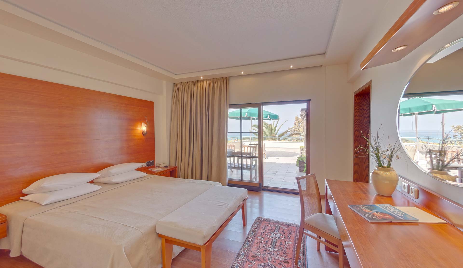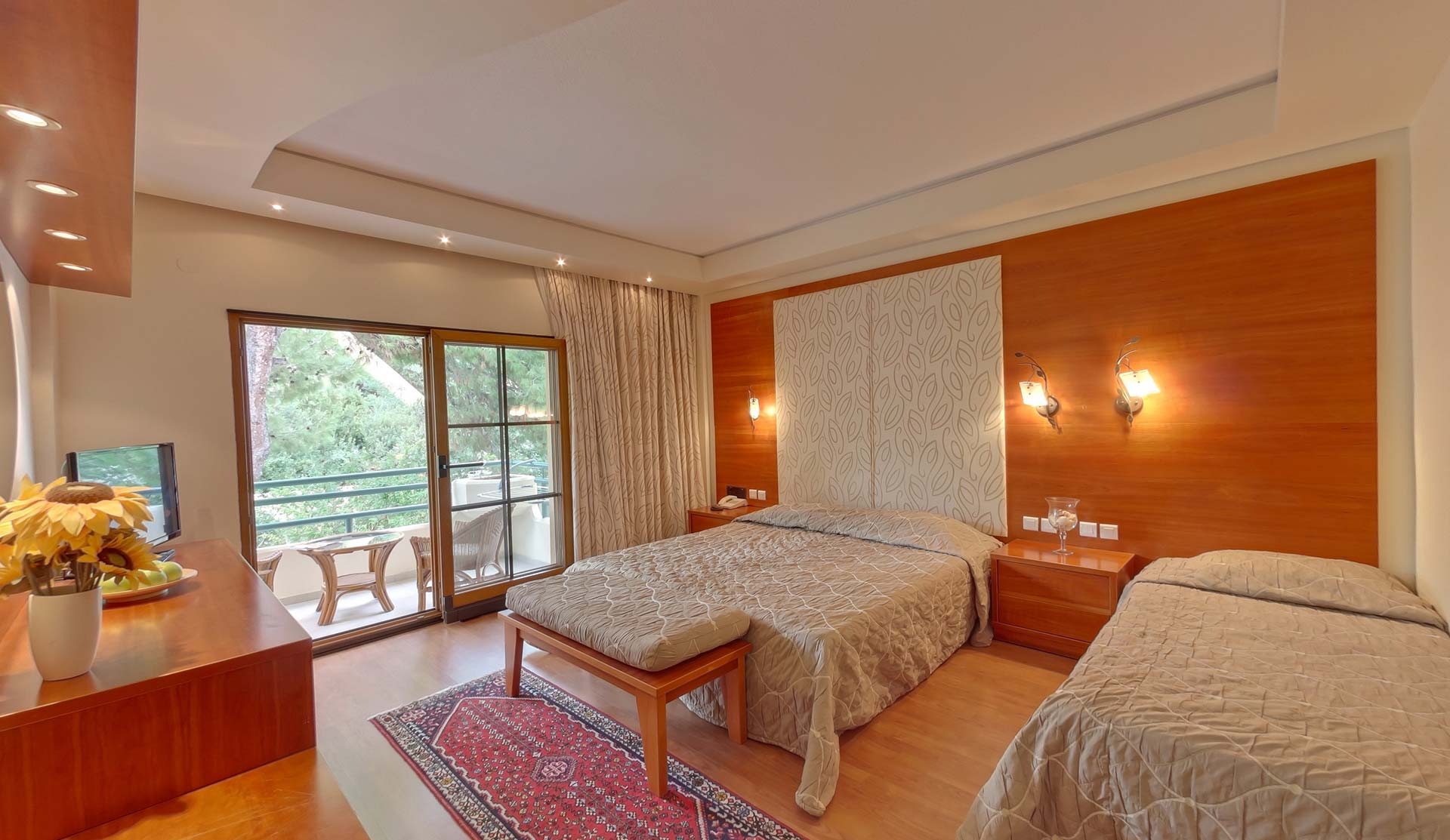 Porodične sobe (family room) se nalaze u glavnoj zgradi ili bungalovima, sa pogledom na more ili baštu, veličine su cca 30 kvm i namenjene su za 2-4 osobe (2 standardna ležaja ili "francuski" ležaji i sofe u jednoj prostoriji). Suite se nalaze u bungalovima, imaju pogled na baštu, veličine su cca 40 kvm, namenjeni su za 2-4 osobe i sastoje se iz spavaće sobe (2 standardna ili "francuski" ležaj) i dnevnog boravka (sofa na rasklapanje). Execuitive suite se nalaze u glavnoj zgradi, imaju pogled na more, veličine su cca 46 kvm, namenjeni su za 2-4 osobe i sastoje se iz spavaće sobe (2 standardna ili "francuski" ležaj) i dnevnog boravka (sofa na rasklapanje). Usluga u hotelu je polupansion - „švedski sto“ (samoposluživanje).