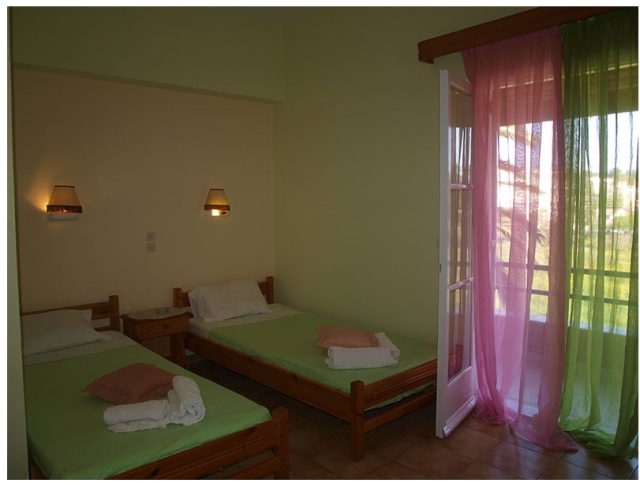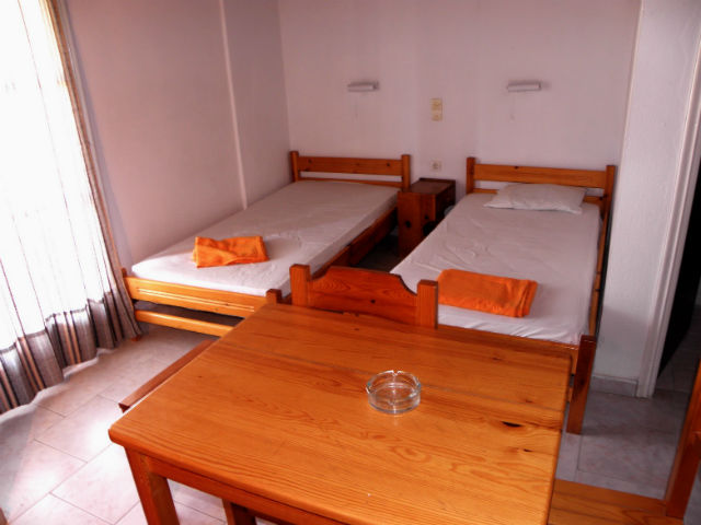 Nalazi se u centru Dasije, na oko 5 minuta hoda od plaže. Vila Vangelis se nalazi u centru Dasije, u mirnoj uličici preko puta hotela „Corfu Chandris„. U svom sastavu ima dvokrevetne studije i dvokrevetne studije sa pomoćnim ležajem. Pomoćni ležaj je metalne konstrukcije, na rasklapanje, potpuno istih dimenzija kao i osnovni ležaj. Sve smeštajne jedinice se nalaze na prvom spratu, imaju kompletno opremljenu čajnu kuhinju, kupatilo (tuš/WC) i balkon. Vila je opremljena peškirima, kao i besplatnom WI-FI internet konekcijom.