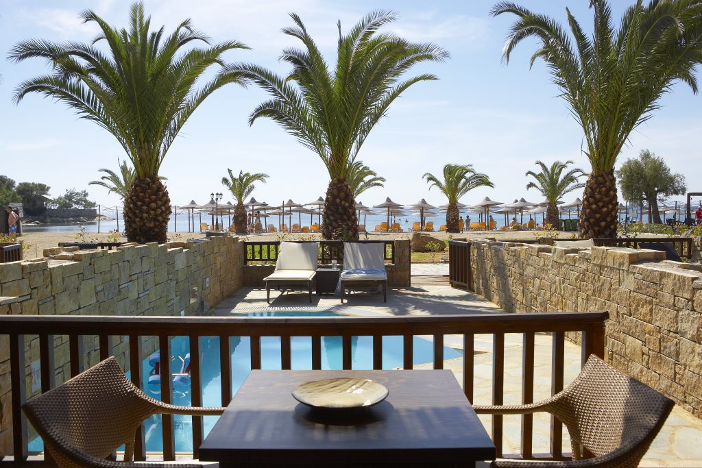 Hotel se nalazi u zalivu, na prelepoj plaži Elia, osam kilometara pre Neos Marmarasa. U okviru ovog izuzetnog kompleksa, nalaze se recepcija, 2 otvorena bazena, jakuzzi, decji bazen, igralište i mini klub, restoran, taverna, bar pored bazena, mini market, fitness sala, TV sala, internet “corner”, wifi Internet u javnim delovima hotela (besplatno), veliki parking, sopstvena plaža, teniski teren (uključeno u cenu), odbojka na plaži... Novi Spa centar je velicine oko 700 kvm (zatvoreni bazen, saunu, parno kupatilo, raznovrsni tretmani i masaže). Sve usluge Spa centra se doplaćuju na licu mesta. Spa centar mogu koristiti iskljucivo osobe iznad 16 godina. Suncobrani i ležaljke oko bazena su ukljuceni u cenu, a na plaži se doplacuju oko 6 eur (set: 2 ležaljke i suncobran). Peškiri za bazen i plažu se iznajmljuju bez doplate. Sobe su renovirane 2007. i 2012. godine i sadrže TWC sa fenom, krevetac (na upit, uz doplatu na licu mesta), aparat za kafu / caj, frižider/mini bar, telefon, A/C, wi-fi Internet (besplatno), sef (besplatno), terasu. Superior sobe su velicine cca 21-30 kvm, namenjene su za 2-3 osobe (2 standardna ili “francuski” ležaj i sofa) i dodatno su opremljene sa LCD SAT-TV-om i u kupatilu imaju bademantil, papuče i kadu sa hidromasažerima.