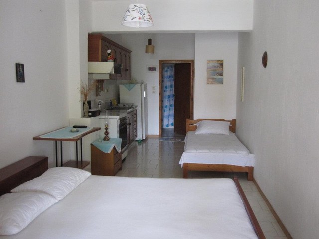 Vila se nalazi na odličnoj lokaciji, u neposrednoj blizini šetališta i na oko 100 metara od gradske plaže. Ispred vile se nalazi ambulanta i rent-a-car. Vila u svom sastavu ima dvokrevetne i trokrevetne studije. Svaka smeštajna jedinica poseduje kompletno opremljenu čajnu kuhinju u okviru sobe, kupatilo (tuš/WC), TV i terasu. Studija sa pogledom na more se nalaze na 2. spratu i označeni su u cenovniku kao P.M. Standardni studiji nalaze se u niskom prizemlju i prodaju se po nižoj ceni. Sve smeštajne jedinice imaju klima uređaje čije se korišćenje doplaćuje na licu mesta (3 eur dnevno po sudiju). Ova doplata nije obavezna. Vila ima besplatnu Wi-Fi internet konekciju. Vila nema peškire.