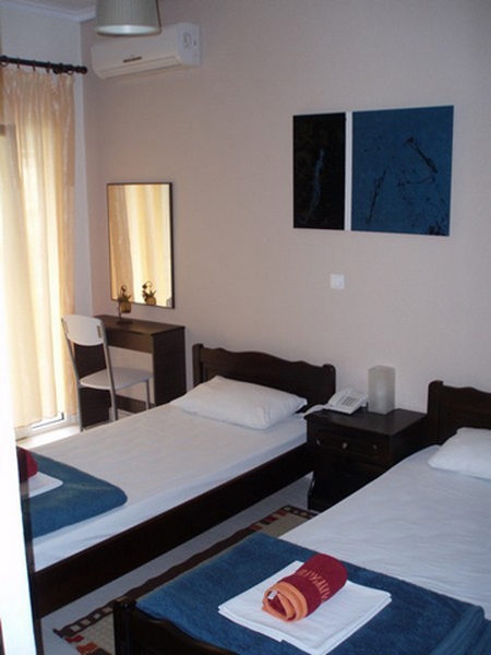 ČETVOROKREVETNI DUPLEKS: Objekat poseduje duplex apartmane, svaki dupleks se sastoji od dve spavaće sobe, od kojih svaka poseduje svoje kupatilo (izuzev duplexa broj 205 I 305, koji ima dve spavaće sobe I JEDNO kupatilo – RASPITATI SE PRI REZERVACIJI) i odvojenom kuhinjom I jednom terasom (svaka soba ima zaseban izlaz na terasu) I dva klima uređaja. Svaka od soba ima TV. Korišćenje klime je uključeno u cenu. Kreveti su grčki standardni I u sobi mogu biti ili dva spojena ležaja ili francuski ležaj. Kuhinja poseduje rešo sa dve ringle, frižider, kao I potrebno posuđe za 4 osobe. Osim što je kuhinja zajednička, sve ostalo je odvojeno, tako da mogu boraviti 2 para, porodica, kao I pojedinci.