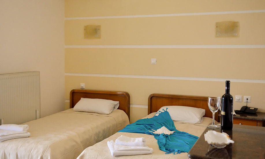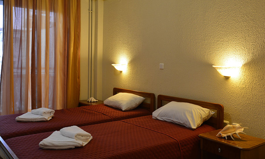 Hotel se nalazi u Paraliji, udaljen oko 350 metara od crkve, a od peščane plaže ga deli samo ulica. Sadržaj hotela: recepcija, sefovi na recepciji (besplatno), wifi internet u javnim delovima hotela (besplatno), restoran, bar, otvoreni bazen, bar na plaži. Suncobrani i ležaljke oko bazena su uključeni u cenu, a na plaži su na raspolaganju uz naručeno piće u baru. Sve sobe imaju TWC, mali frižider, TV, A/C, krevetac (na upit bez doplate) i terasu. Standardne sobe su veličine cca 20-25 kvm, iamju pogled na grad ili na bazen (te sobe se prodaju po sitoj ceni), bočni ili direktni pogled na more i namenjene su za 2-4 osobe (2 standardna ležaja ili "francuski ležaj" i pomoćni ležaj). Usluga u hotelu je polupansion: doručak i večera - “švedski sto” (samoposluživanje).