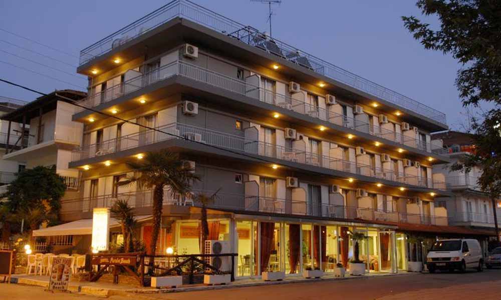 Hotel se nalazi u centru Paralij, udaljen oko 100 metara od crkve, na peščanoj plaži.