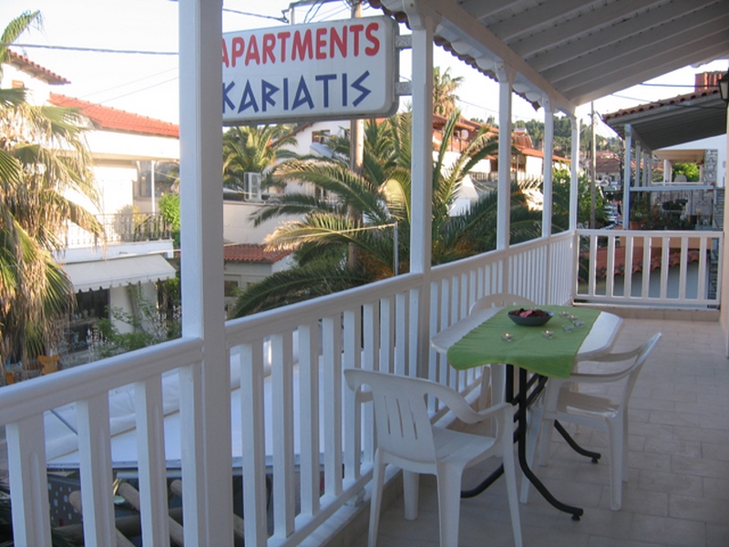 VILA KARIATIS- je izuzetno tražena na našem tržištu zbog svoje izuzetne pozicije i veoma lepih studija i apartmana koja ta kuća nudi, kao i zbog obezbeđenog PARKING prostora za sve naše putnike (na 80m od vile)..Vila "KARIATIS" se nalazi na samom šetalištu u strogom centru Pefkohorija, a udaljena je od plaže nepunih 30 metara. Izuzetna pozicija nudi Vam izuzetno letovanje kako za porodice tako i za pojedince. Objekat ne poseduje peškire.