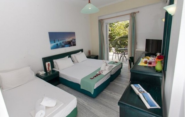 Hotel se nalazi izmedju Platamona i Nei Porija, na oko 200 metara od peščane plaže. Sadržaj hotela: recepcija, wifi internet u javnim delovima hotela (besplatno), restoran, otvoreni bazen, bar pored bazena, parking… Suncobrani i ležaljke oko bazena su uključeni u cenu. Sve sobe imaju TWC sa fenom, mali frižider, SAT TV, A/C i terasu. Standardne sobe su veličine cca 15 kvm, namenjene su za 2-3 osobe (2 standardna ležaja ili "francuski ležaj" i pomoćni ležaj). Porodične (family) sobe su namenjene za 2-4 osobe i sastoje se iz 2 prostorije koje nisu odvojene vratima (u jednoj se nalaze 2 standardna ležaja ili "francuski ležaj", a u drugoj sofa i kuhinja). i Usluga u hotelu je polupansion: doručak i večera - “švedski sto” (samoposluživanje).