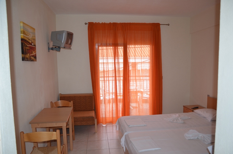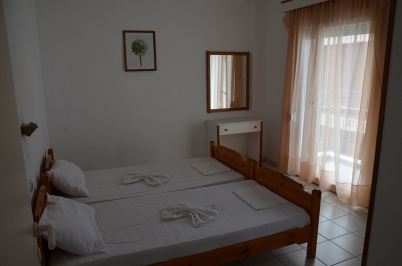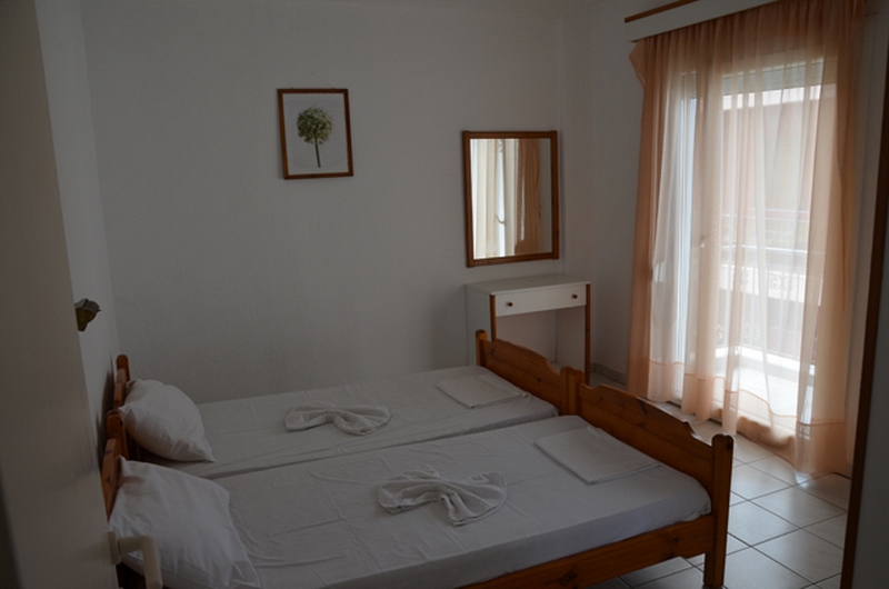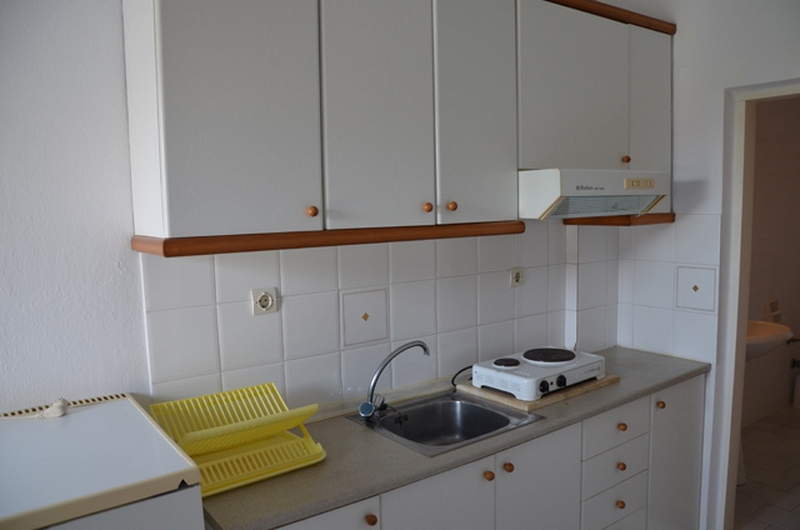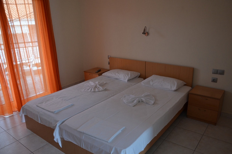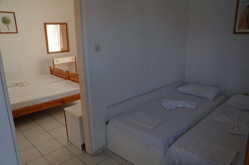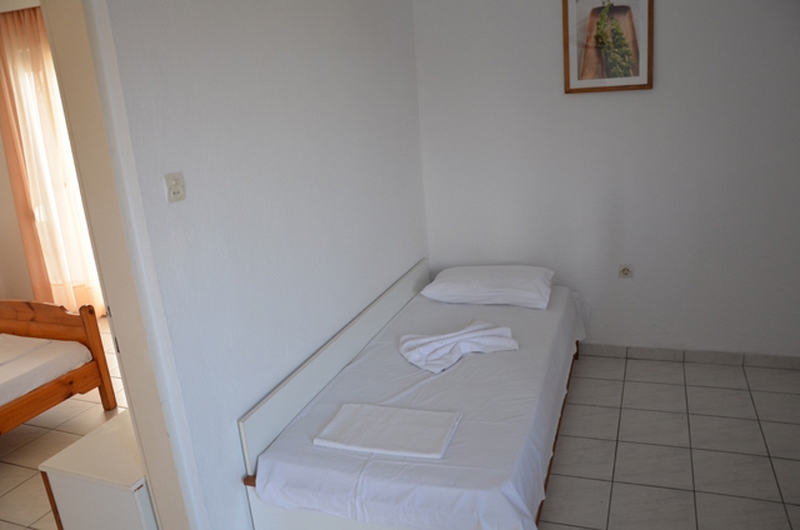 APARTMAN 1/3+1-Na ulazu u apartman nalazi se kompletno opremljena kuhinja sa rešoom i frižiderom, kao i jedan ležaj na razvlačenje (dimenzija osnovnog dela ležaja je 190x80cm, a dela koji se izvlači 180x70cm), preko puta je kupatilo sa TUŠ/WC. U produžetku je spavaća soba sa dva standard singl ležaja, ormanom za stvari, noćnim stočićem. Svi apartmani poseduju klima uređaj (uključen u cenu) i TV/KAT i terasu sa stolom i stolicama.