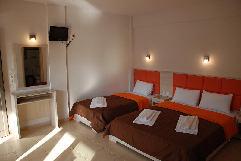 Vila Sarti Inn je novoizgrađeni objekat koji se nalazi u starom delu Sartija, a na samo 80m od plaže. Objekat je završen 2011. godine. U ponudi imamo dvadeset dvokrevetnih, trokrevetnih i četvorokrevetnih studija. Dvokrevetni studiji se nalaze na drugom spratu, trokrevetni na prvom kao i u spuštenom prizemlju, dok su četvorokrevetni studiji na drugom spratu i u spuštenom prizemlju. Svi studiji poseduju kompletno opremljenu kuhinju (frižider, mini električni šporet bez rerne, posuđe), TWC i terase sa pogledom na bazen. U neposrednoj blizini je megamarket Marinopoulos kao i više manjih marketa. Gostima je na raspolaganju bazen, ležaljke pored bazena, Wi-Fi pored bazena, SAT TV, pool bar, tuš i toalet za poslednji dan boravka. Čišćenje apartmana, zamena posteljine i peškira vrši se svakog petog dana. Upotreba klima uređaja je uračunata u cenu najma.
