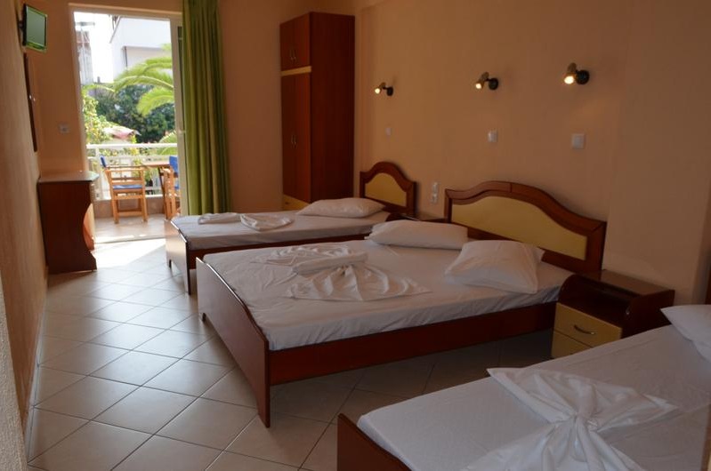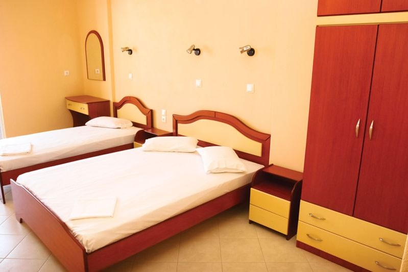 Vila Theo – nalazi se u samom centru starog dela Sartija na 80m od plaže. U našoj ponudi imamo trokrevetne i četvorokrevetne studije koji se nalaze u spuštenom prizemlju, prvom i drugom spratu vile. Svi studiji su okrenuti ka moru. Trokrevetni studiji sastoje se od jednog francuskog ležaja i jednog singl ležaja dok se četvorokrevetni sastoje od jednog francuskog i dva singl ležaja. Svi studiji sadrže kompletno opremljenu kuhinju (frižider, mini-električni šporet, posuđe), kupatilo sa tuš kadom, LCD TV, Wi-Fi (slabog protoka), klima uređaj koji se doplaćuje na licu mesta. Čišćenje i promena posteljine vrši se svakog petog dana boravka. Ispred same vile je šetačka zona sa brojnim prodavnicama i restoranima.