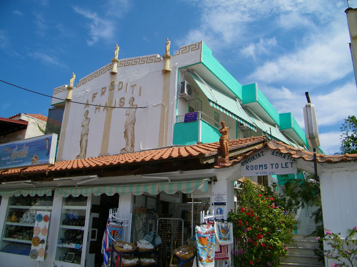 Nalazi se u zalivu Simonitiko na 11km od Neos Marmarasa do kog se stiže putevima kroz prelepe prirodne predele preko P