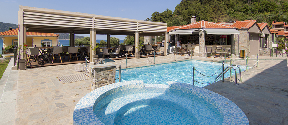 Nalazi se u blizini Golden Beach plaže i okružen je prirodnim lepotama ostrva Tasos. Hotel nudi raznorazne usluge pogodne za porodice sa decom. Hotelski kompleks se sastoji od 5 zgradasa različitim tipovima soba. Hotel ima dva bazena koja su povezana sa vodopadima, dečiji bazen, otvoreni đakuzi, restoran, dva bara na bazenu, vrt na krovu, dečiju igraonicu, parking, recepciju, lobi, bankomat, A/C u javnim delovima hotela. Sve sobe imaju A/C, SAT TV, kupatilo sa kadom ili tušem, terasu sa pogledom na more ili na bazen, wi fi, fen za kosu, a većina ima opremljenu kuhinju.