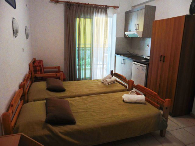 Vila se nalazi na 200 metara od centra i 30 metara od plaže. Vila Maria se nalazi na 200 metara od centra i na plaži je. U blizini su pekara i prodavnica. Poseduje dvokrevetna i trokrevetna studija. Treći ležaj je fotelja na rasklapanje u kojoj može spavati odrasla osoba. Svaki studio delimično gleda na more i poseduje kompletno opremljenu čajnu kuhinju, kupatilo (tuš/WC), TV i balkon, kao i klima uređaj koji se doplaćuje na licu mesta (5€ dnevno po smeštajnoj jedinici) dok je Wi-Fi internet konekcija besplatna. Doplata za korišćenje klima uređaja nije obavezna. Vila ima peškire.
