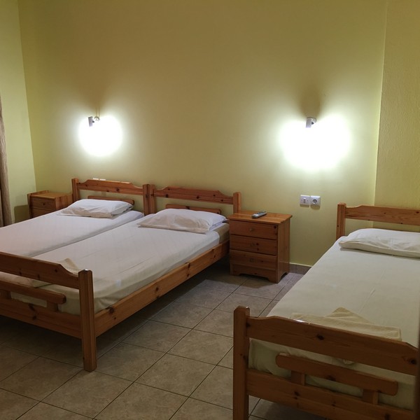Vila Markos se nalazi u širem centru mesta, na oko 70 m od plaže, pa je gostima u blizini veliki broj mini marketa, mesara, ribarnica, pekara, taverni…Blizina plaže je još jedna od prednosti ove vile. Poseduje dvokrevetne i trokrevetne sobe i studije, a svaka smeštajna jedinica poseduje kompletno opremljenu čajnu kuhinju, kupatilo (tuš/WC), TV i balkon, kao i klima uređaj koji se doplaćuje na licu mesta (5€ dnevno po smeštajnoj jedinici) dok je Wi-Fi internet konekcija besplatna. Doplata za korišćenje klima uređaja nije obavezna. Smeštaj u dvokrevetnim studijima je moguć za dve osobe i jedno dete do 5 godina. Gostima koji borave u sobi na raspolaganju je odvojena kuhinja koju koriste samo gosti te sobe i od iste poseduju ključ. Vila ima peškire.