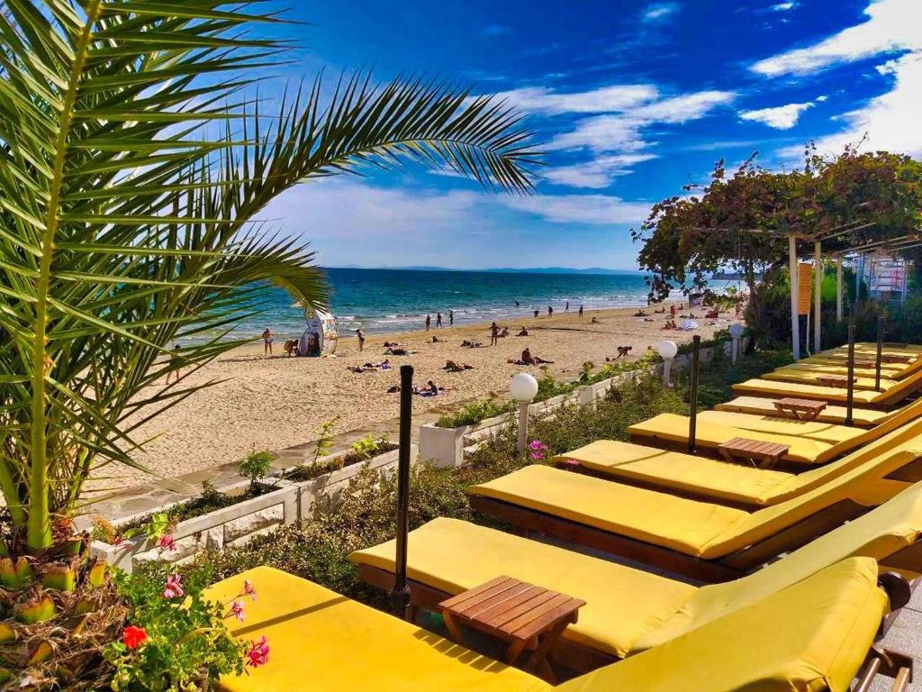 Mesto i položaj: Hotel Aphrodite Beach 4* se nalazi na južnoj plaži Nesebara i nalazi se na samoj plaži! Dizajnirano za sve koji vole sunčane plaže, ugodnu klimu i čisto more u kombinaciji s udobnošću i luksuzom. Možete se opustiti pored otvorenog bazena sa pogledom na more, popiti koktel ili se razmaziti masažom.