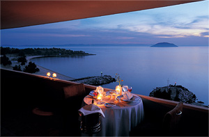 Sitonia Beach -Veliki hotel, renoviran 2007. godine, na plaži, sa preko četristopedeset soba, ukusno nameštenih i opremljenih A/C, telefonom, mini barom, sefom, krevecom (na upit, bez doplate), wi-fi Internetom (uz doplatu na licu mesta), SAT TV-om, terasom i TWC sa fenom. U svim tipovima smeštaja (osim u standardnoj sobi i junior suite) se nalaze i LCD TV i bademantili i papuče. Superior sobe su sa pogledom na golf teren, bočnim ili direktim pogledom na more, veličine su cca 18-26 kvm i namenjene su za 2-3 osobe (2 standardna ili "francuski" ležaj i sofa). Junior suite imaju pogled na golf terene ili bočni pogled na more, veličine su cca 29-31 kvm, namenjeni su za 2-4 osobe i sastoje se iz kombinovane dnevno-spavaće sobe ("francuski" ležaj i sofa). Executive suite imaju pogled na golf terene ili na more, veličine su cca 49-57 kvm, namenjeni su za 2-4 osobe i sastoje se iz spavaće sobe ("francuski" ležaj) i dnevnog boravka (sofa/pomoćni ležaj). Porodične sobe (superior family room) su sa pogledom na golf teren, bočnim ili direktim pogledom na more, veličine su cca 34-38 kvm, namenjene su za 2-4 osobe i sastoje se iz kombinovane dnevno-spavaće sobe ("francuski" ležaj i sofa). Gosti hotela Sithonia koriste sve usluge celog kompleksa date u opisu za Porto Carras.