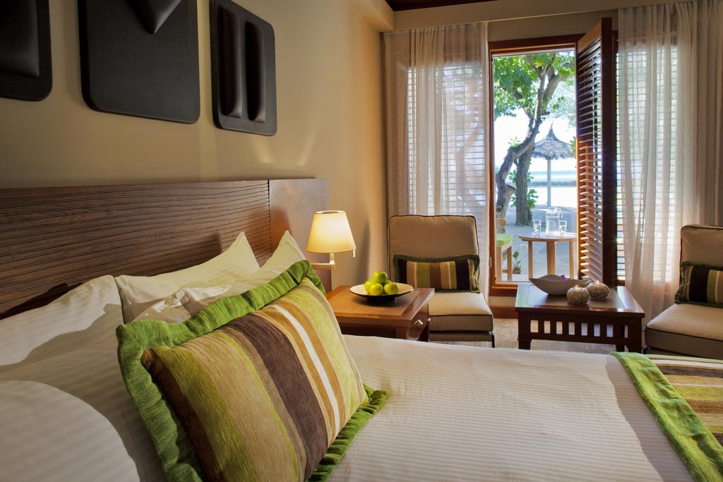 Luksuzno uređene sobe i vile poseduju sopstvene terase sa kojih se pruža pogled na plažu. Svaka soba sadrži TV sa kablovskim/satelitskim kanalima i kineskim kablovskim kanalima, kao i sef i radni sto. Na raspolaganju su frižider i pribor za pripremu čaja/kafe. Sopstvena kupatila su opremljena kadom i tušem. Dodatne pogodnosti uključuju komplet za oralnu higijenu, papuče i električni čajnik.